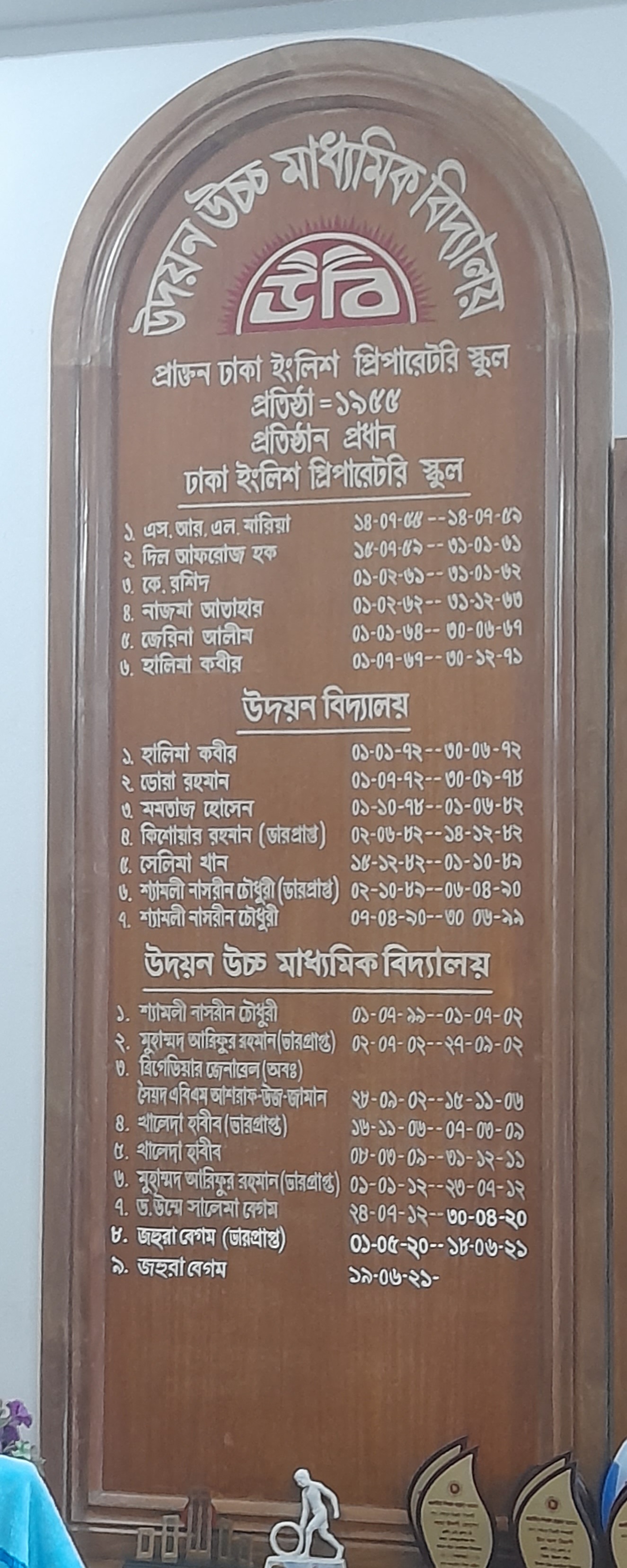The number of students in the English medium school called 'Dhaka English Preparatory School' was very small. In a very short time, the number of students continues to increase. Within a few years, it was considered one of the best schools in Dhaka. After the independence of the country in 1971, radical changes took place in the field of education. In the course of this drastic change, in 1972, with the approval of Dhaka University, the ‘Dhaka English Preparatory School’ was transformed into a Bangla Medium School and was renamed as ‘Udayan Bidyalaya’. It was upgraded to a secondary school in 1975. ‘Udayan Bidyalaya’ was approved as a secondary school by the Board of Intermediate and Secondary Education, Dhaka. In 1999,education activities were extended up to class XI, including science and business education and class XII in 2000. Then the institution was renamed ‘Udayan Uchcaha Madhyamik Bidyalaya’. It is to be noted that ‘Udayan’is the name of a house of the great poet and Novel Laureate of Bangla literature,Rabindranath Tagore. This house is situated in Santiniketan, India. Inspired by this name of the house of our great poet, the school was named ‘Udayan’.‘Udayan’refers to sunrise i.e., rising sun that never goes down.